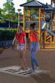 Jump, stamp or push down on the ‘piano’ notes to play your favorite tunes, solo or with friends, for some “Big” energetic fun; the sonorous sub-surface bells will create clear distinctive tones beneath your feet.