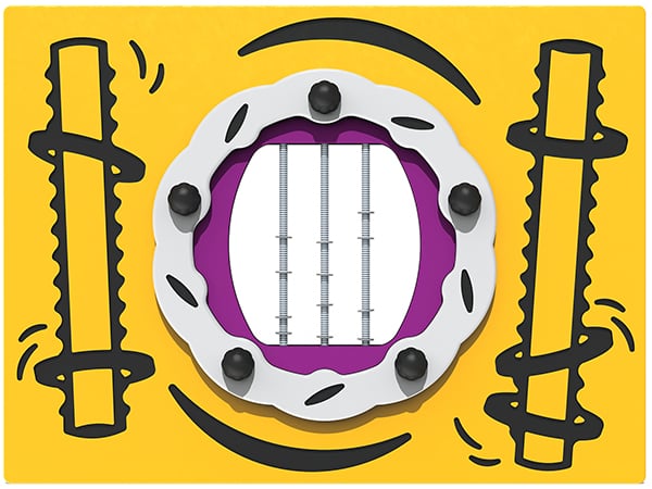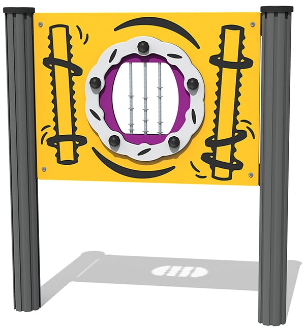 Turn the rotating insert and watch in delight as the discs jingle, wobble and twirl down the bars, creating a captivating visual and auditory experience. This interactive play panel offers engaging fun for children of all abilities, making it a brilliant addition to any playground. Manufactured from 15mm thick XD-Eco HDPE material, the panel features zinc plated washers and threaded bars, all secured with stainless steel fasteners for lasting durability.