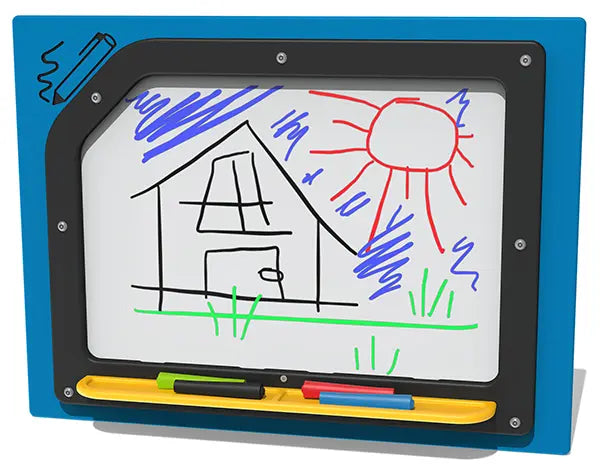 Draw away with the Dry Wipe Station XD Play Panel. Have an arts and crafts day with your friends using the dry wipe marker. Constructed using an exterior grade dry wipe panel insert mounted on HDPE panel. The panel comes with an artists shelf with pen holders, four dry wipe marker pens in various colours and one cloth.