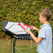 This outdoor musical instrument is a clever blend of two African instruments; the Sansa (thumb piano) and a Marimba (xylophone). Using the diatonic scale and spanning two octaves (C4-C6), the 15 notes of the Sansa-Rimba are arranged as a traditional thumb piano with the scale ascending from the center outwards.