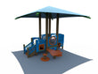 This eco-friendly playground structure is designed for children ages 6 to 23 months old. Complete with a slide, climber, interactive panels, and a toddler table, it fosters early developmental skills in a safe and vibrant environment for little adventurers to thrive. This design is available with or without shade.