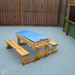 The Sit and Play Sand Table is the latest addition to our range of sand and water play units. There's room for up to six seated children and more standing room at the ends. The table comes with an easy to remove HDPE lid with rounded corners and edges.